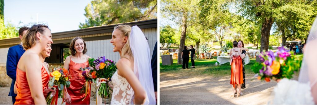 The couple’s wedding party was wearing the most fun orange dresses and bright blue suits! I, of course, love anytime a couple leans into the color and I think the choices contrasted perfectly against the green of El Rancho Robles. I put on some music on my bluetooth speaker and we had a fun and stress-free photo experience with Taylor, Grant and their people!